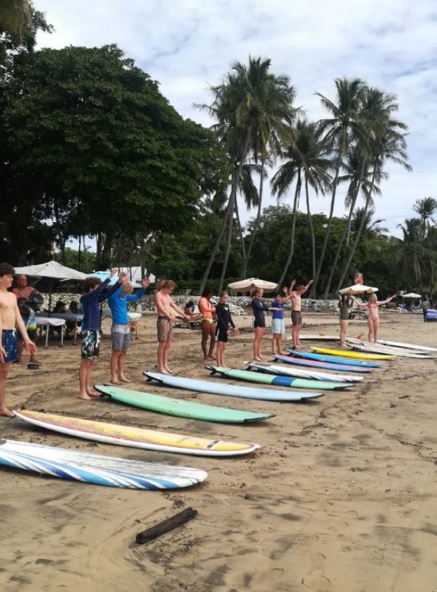 Besides the surf and Spanish lessons, we’ll have cultural activities such as Latin dance classes and cooking classes. On the weekends, we will explore the surrounding natural wonders of the Guanacaste Province, we will raft down mountain rivers, zip line through forest canopies, horseback ride on white sand beaches, sea kayak to pristine islands, swim in crystal blue bays and hike to towering waterfalls. We are committed to help protect the beauty and natural environment of Costa Rica. To give back, all students will participate in a beach clean-up each Friday.
