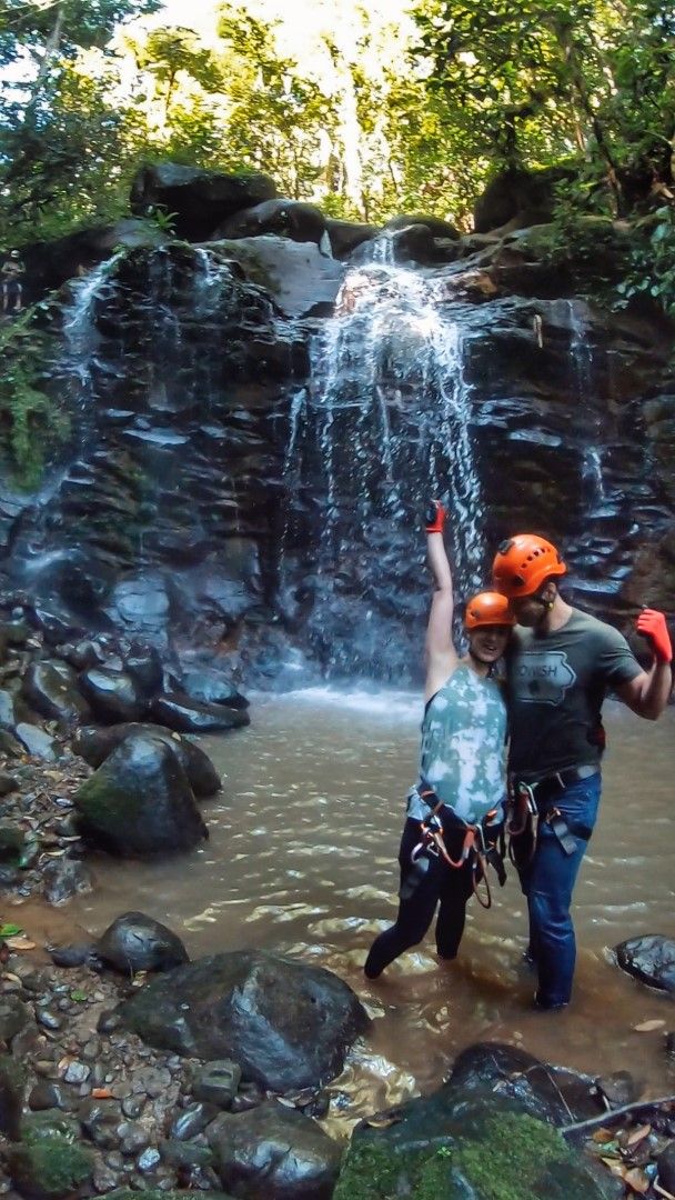 What is canyoning? Well, it's ziplining, combined with rappelling (through waterfalls), and trekking through the rainforest!