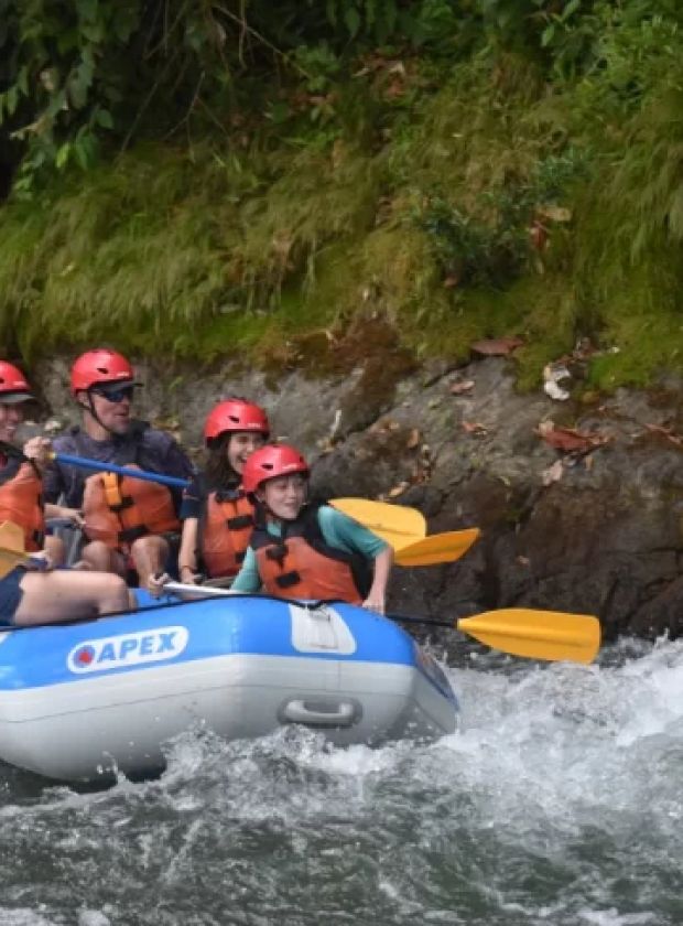 Para cuando regreses al campamento, el almuerzo estará listo. Tendrás tiempo para descansar un poco, cambiarte de ropa y almorzar. La segunda parte del recorrido del río comienza alrededor de las 12:30 pm y atraviesa rápidos de clase III y IV y el impresionante cañón de Dos Montañas. El recorrido finaliza alrededor de las 15:00 horas y luego regresaremos a Turrialba.