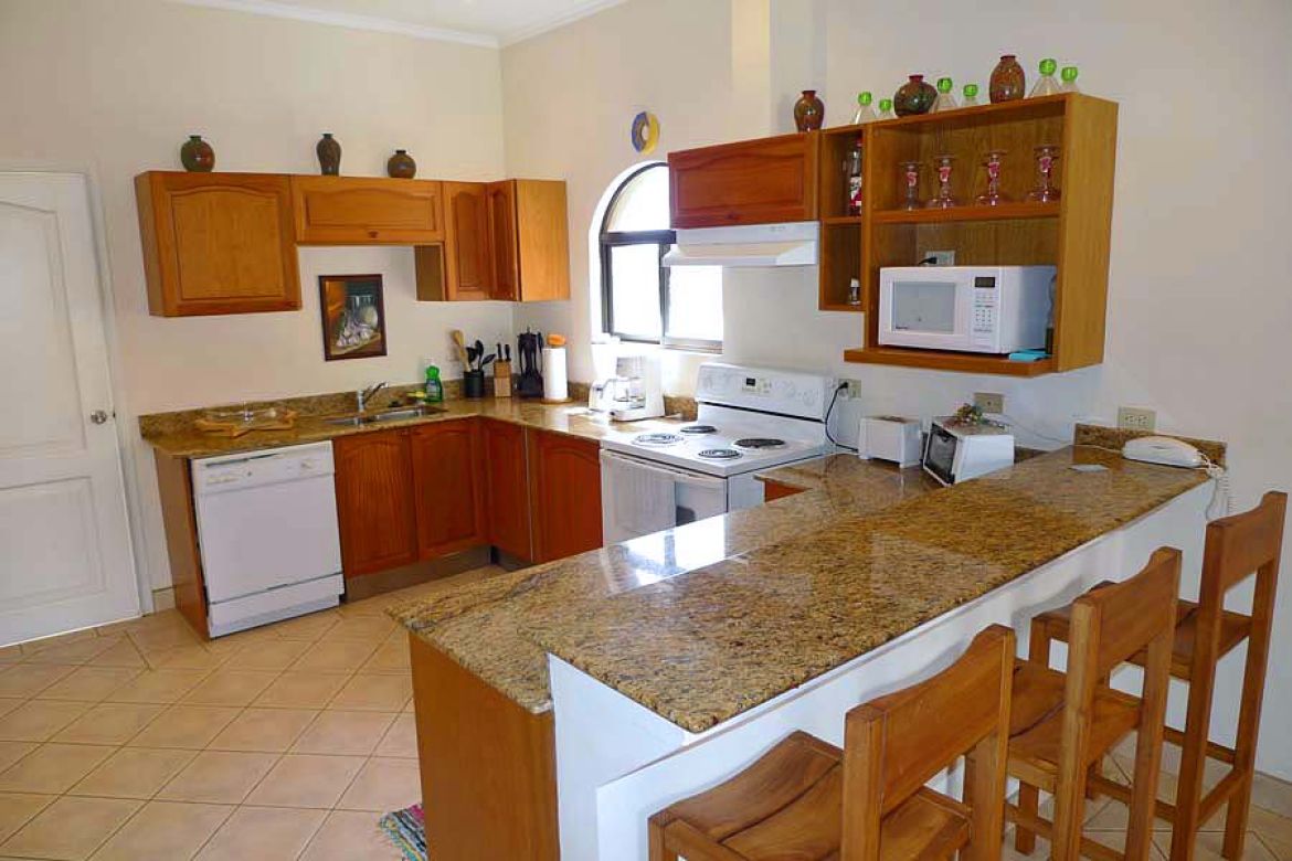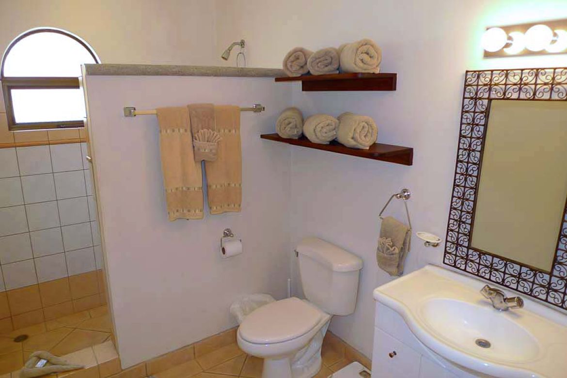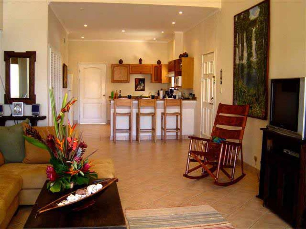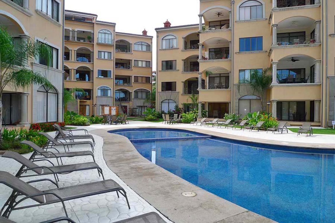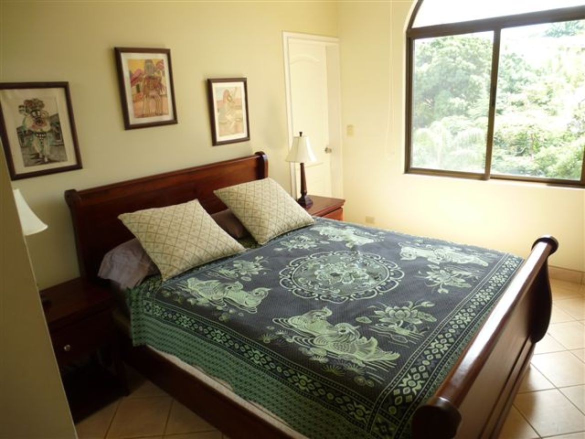 This condo is located in the heart of Tamarindo, 3 bedroom, 2 bathroom, located on the 4th floor. Includes a/c in all rooms, cable TV, kitchen, shared swimming pool, and just steps from Tamarindo beach. Sleeps 6 maximum. Welcome to the master bedroom. It features a king sized bed, full closet, tv, large windows with partial ocean view, sliding glass door out to balcony, and a master bathroom. The master bathroom contains a tile shower. There are two other rooms in this condo. Room number one of the two features a queen sized bed, full sized closet and armoire and a door to the mini balcony shared in between this room and the third bedroom. This next bedroom contain two twin beds perfect for the kiddos to use, a full sized closet and cable tv. These two rooms share a bathroom with a tile shower. Need another bed? The living room couch doubles as a pull out bed perfect for two people.