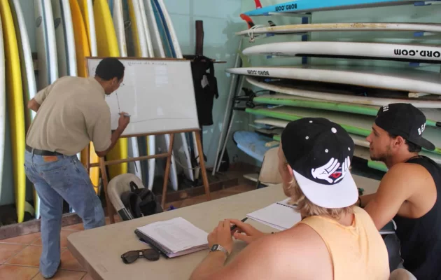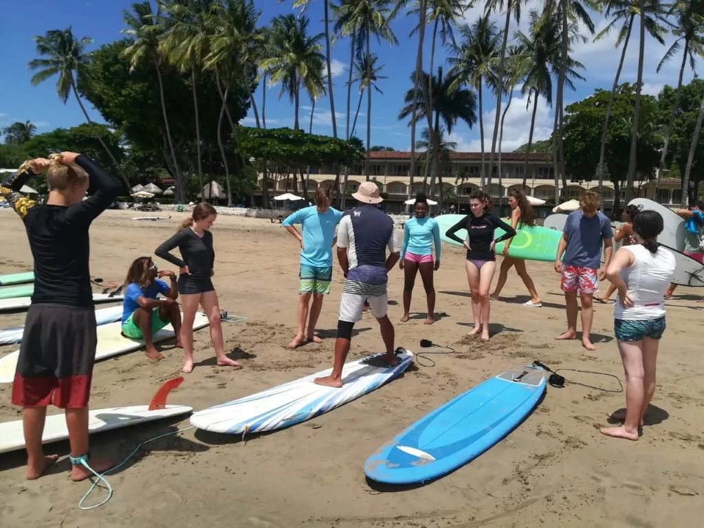 No prior surf or language experience necessary to join, although it does help! Our Surf Camp takes place in Playa Tamarindo, Costa Rica, which is located on the Northern Pacific coast and is a world-famous surfing destination with three different beaches and dozens of different breaks in the immediate area. This makes it an ideal place for surfers of all levels and abilities, from beginner to advanced. Certain parts of the beach are perfect for beginners, while just a couple hundred meters away there is a completely different break, great for intermediate and advanced levels. As students progress in their ability, they will be challenged with larger and more technical waves.